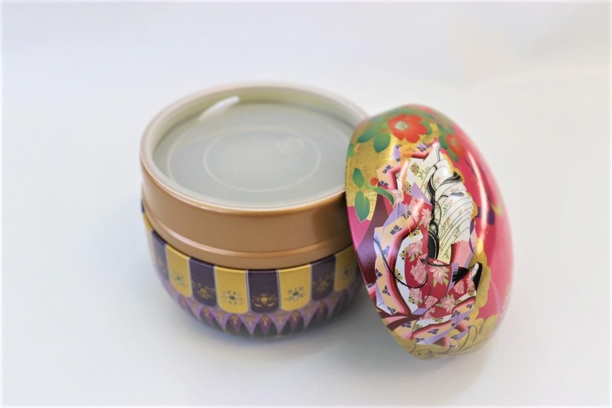 スチール製の可愛いデザインのお茶缶。およそ100gの茶葉が入ります。(茶葉の形状によっては異なります)